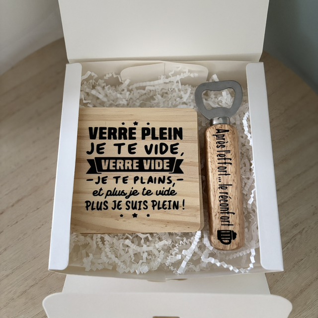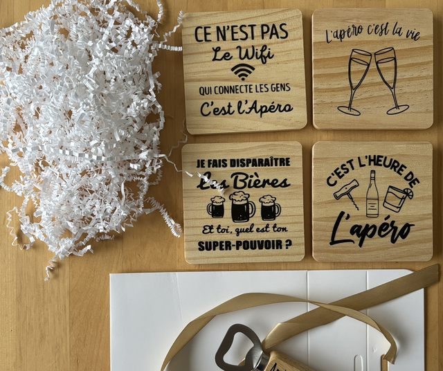 Coffret cadeau : 4 dessous de verres + décapsuleur
