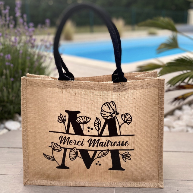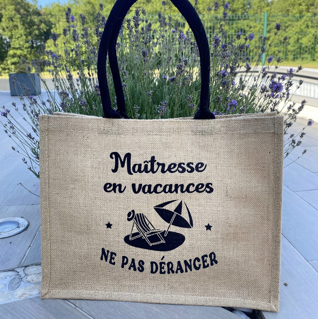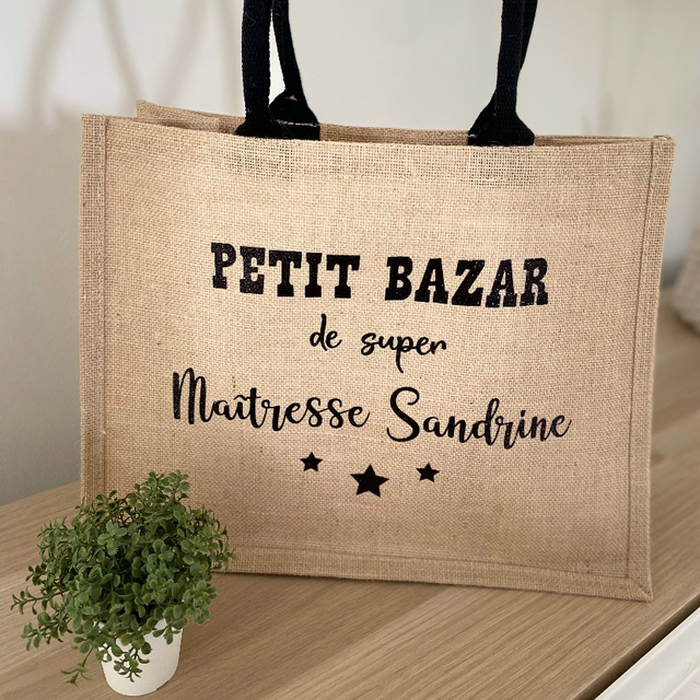 Sac en jute personnalisé pour Maîtresse, Atsem, Nounou