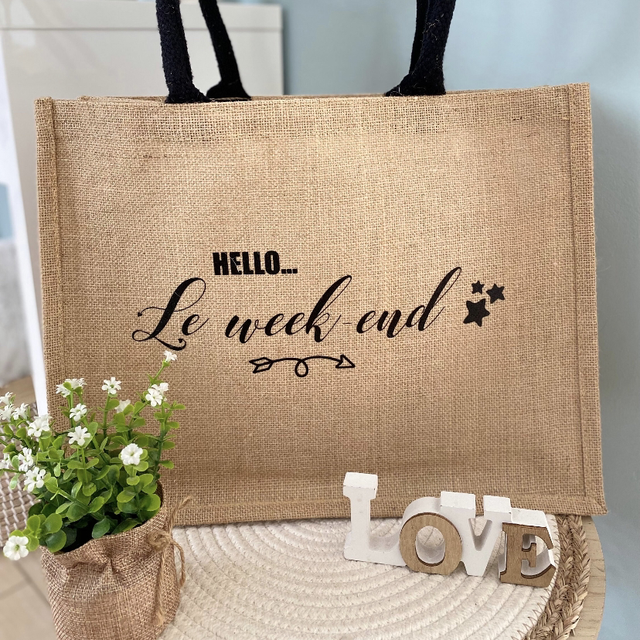Ce sac en toile de jute dispose de 2 poignées noires de 55cm en coton pour vous permettre de le porter aussi bien à la main que sur l’épaule. Intérieur plastifié.