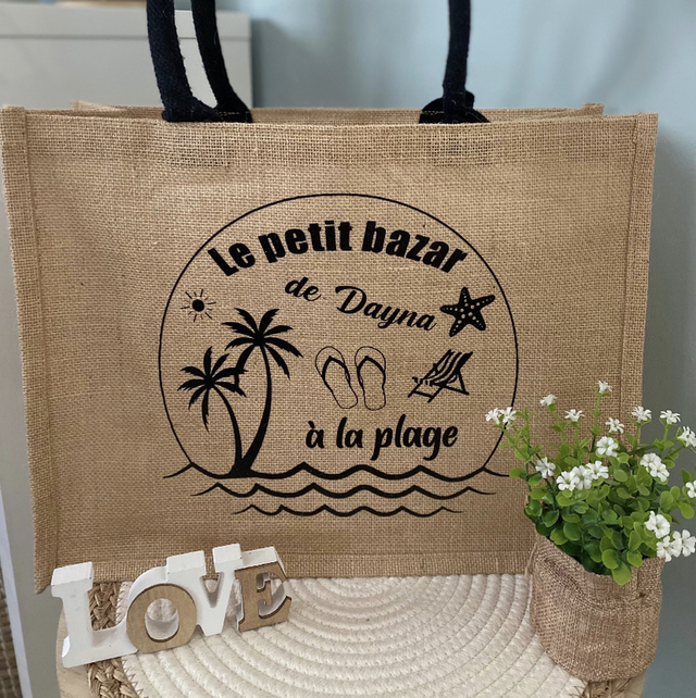 Sac en toile de jute, pour la plage, la piscine, le marché, le pique-nique, etc …